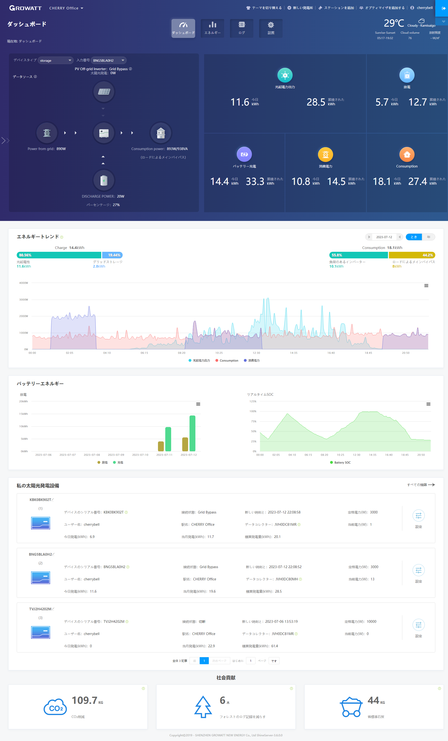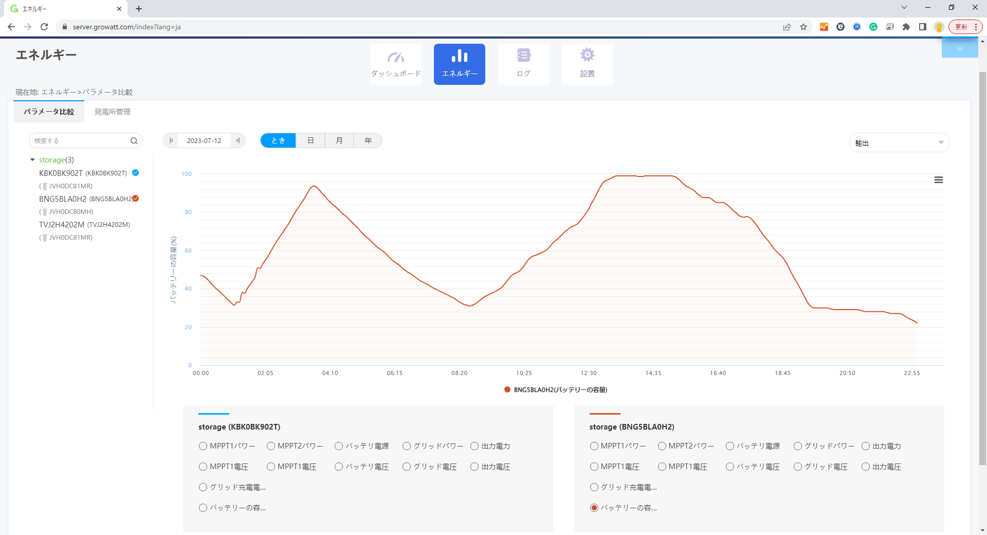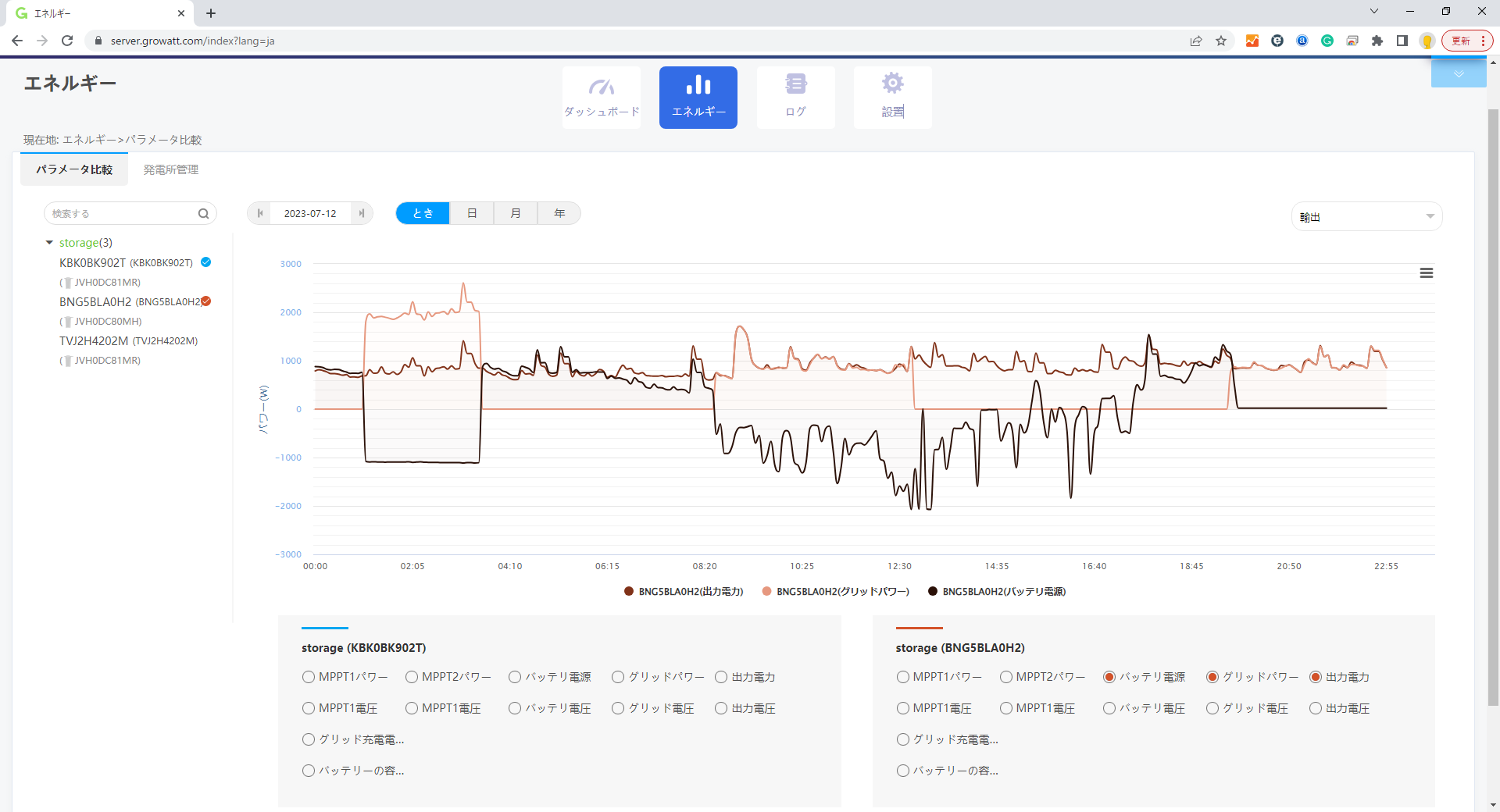 これは、2台目の方の、バッテリー電源とグリッドパワー、出力電力 3つの数値